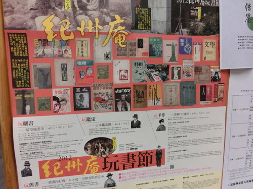(中央社記者許雅筑台北20日電)為期5個月的「蠹魚之春:2012紀州庵玩書節」活動將舉行,由文訊雜誌社、茉莉二手書店及舊香居協辦,活動包括晴空綠書市、古本鑑定團、舊書同好會及書籍DIY。