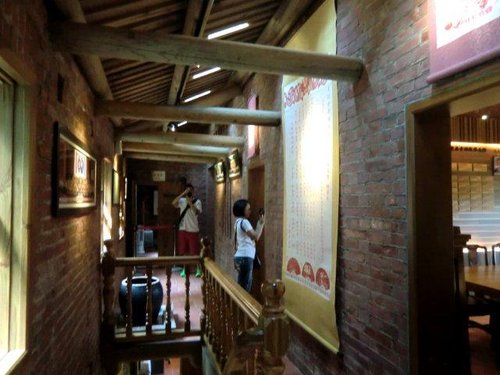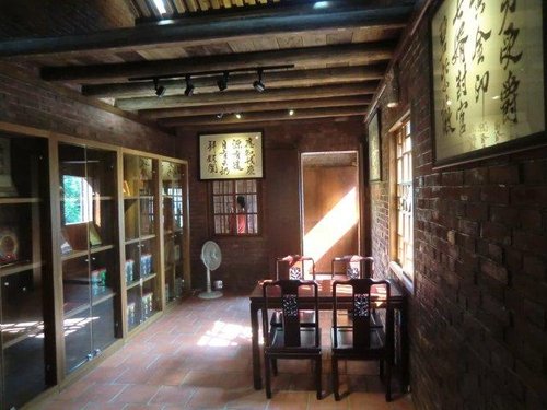 「內湖紅樓」建材使用福州杉、烏心石、檜木、肖楠等,為磚造兩層樓建築,坐北朝南,可遠眺公館山及南港山脈,平面略呈「凸」字形,正身左右各突出兩層樓房間,前後端各設通廊。為「三間式正身」(即正廳、左耳房、右耳房布局)、「一正後側兩廂」布局(正廳、左耳房、右耳房在前,後夾左右偏房)。立面山牆對稱,除有中式傳統吉祥圖案、西方花草紋樣,並有洗石子、泥塑及進口彩色瓷磚裝飾。