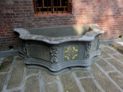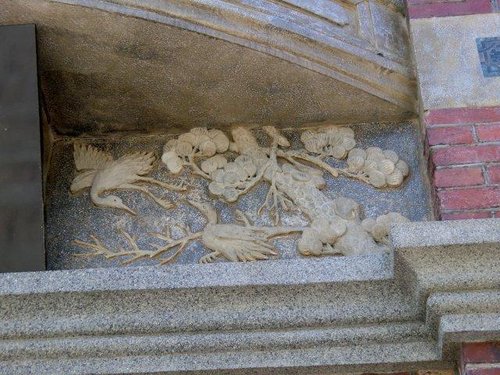 二樓前端規劃突出弧狀陽臺,增加建築物主體縱線之視覺變化。圓拱窗、尖拱窗亦遍布周身,富有節奏韻律。紅樓屋頂則為板瓦屋坡,正身山牆為火形馬背。有一說為紅樓採取寶座造型,陽臺如椅、女牆短柱為扶手、尖形山頭為椅背,如此依山穩坐眺望,是出於風水考量之配置。紅樓前庭設置花園,後院密植果林,顯示當時鄉紳對於居家風格與生活品味的理想,亦可從建築式樣得知其遠瞻及創新的意念。內湖紅樓中各種不同文化的圖像與建材融合密切,類似迪化街洋樓,是為大正年間典型的豪宅。