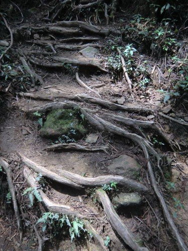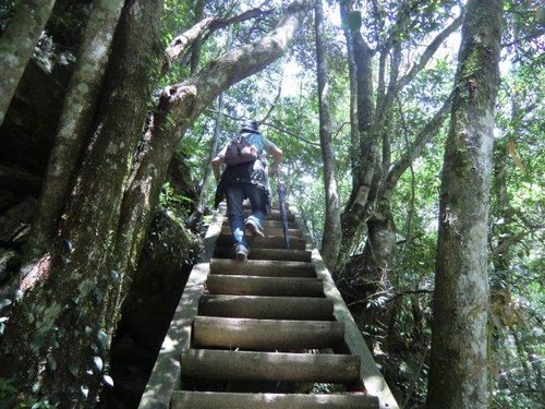 一般而言登加里山來回需要6個半鐘頭,早上7.00台北出發10:10才抵達加里山登山口,為了不耽誤其他山友的行程,我只好拼命趕路,希望能在15:00前下山,沒想到的是後段山路比我想像的還要崎嶇,一路四肢並用,攀繩走壁,讓我久沒運動的肌肉,吃盡苦頭..........
