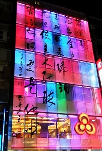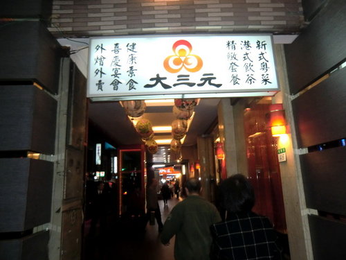 大三元酒樓創立於民國五十九年,坐落於台北市衡陽路46號,是一棟六層的美食餐廳,不同其他餐廳外牆掛著諾大招牌,大三元酒樓外牆是高達六層樓的書法,透過玻璃與燈光,呈現餐廳結美食與藝術與雅致的訴求。這項特色,讓經過大三元的人,總在對面街頭駐足留連,仰頭欣賞這行雲流水的書法之美。