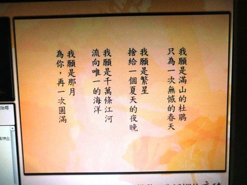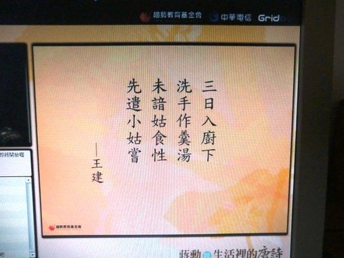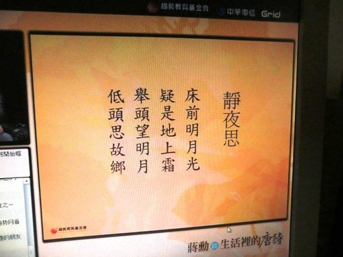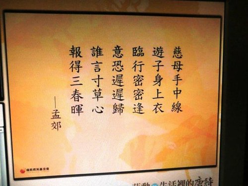 「記得兒童時,犯了錯,都會被父親要求罰跪,直到背誦完一首唐詩,才准許站起來。在成長過程中,自然而然,背誦了許多經典唐詩。那時候,記憶力好,背起來也不難。那些美麗的詩句,很自然地,就一一烙印在腦海當中。」