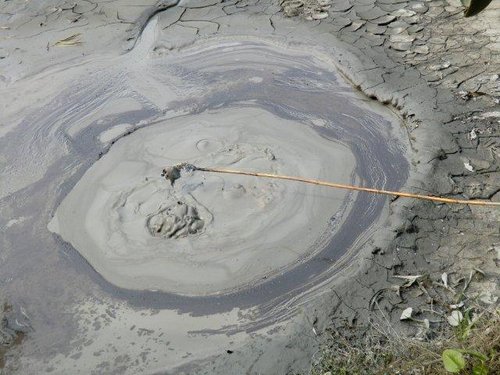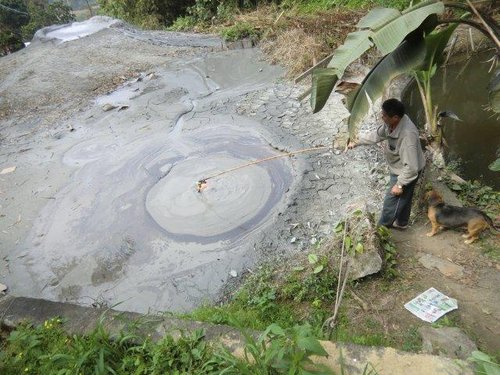 燕巢新養女湖是一處由私人開發管理的噴泥景觀區,主人會在噴泥池上方點火驗證噴出的泥水中含有天然氣。