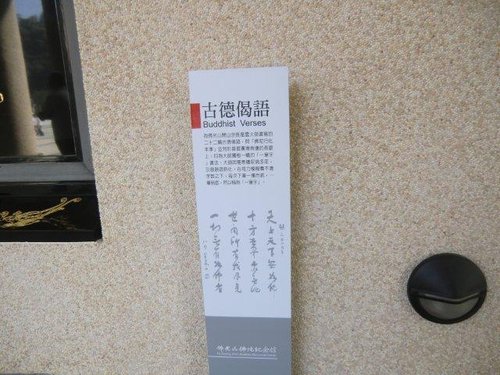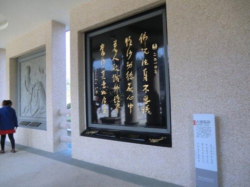 「古德偈語」位在佛陀紀念館菩提廣場兩側廊道壁面上,星雲大師選自佛教經典中,精選讚佛功德的詩偈與經文,並以書法文字表達佛教義理的內涵,讓人們明瞭佛陀的人間性格與大眾性格。