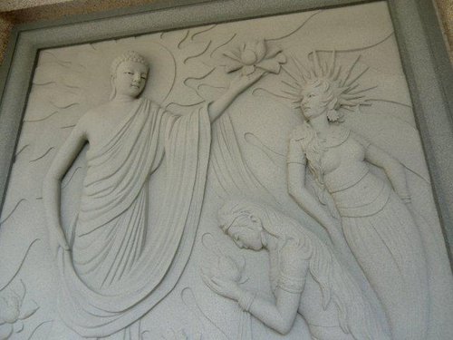 而三位比丘尼則為第一位出家之大愛道、為美麗悲哀之妙賢、以及女眾中自在神通之蓮華色比丘尼。