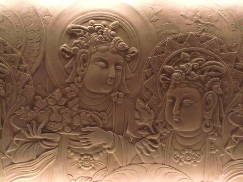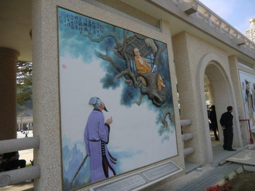佛陀紀念館遴選四十幅作品,由葉先鳴老師以水泥工法雕塑,陳明啟老師彩繪上色,立體的浮雕好似人物呼之欲出,為人們娓娓道訴何謂禪。