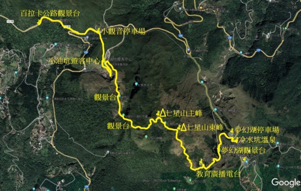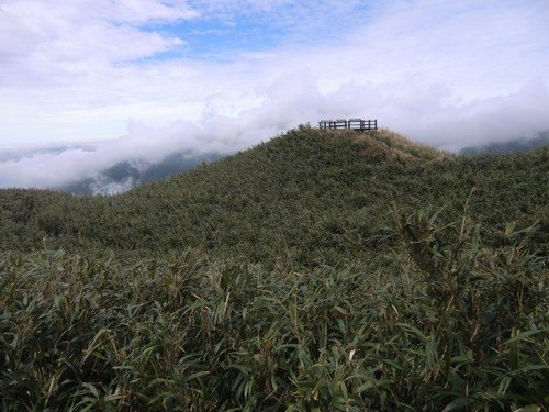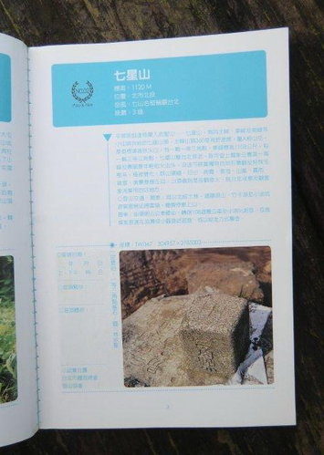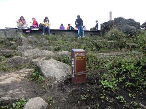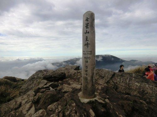 七星山主峰海拔1120公尺,一等三角點以及一等衛星控制點,是台北市第一高峰、台灣小百岳。山頂設有木椅休息區,角落處有陽明山國家公園『足印草山體驗自然』拓牌之『體』字樁。