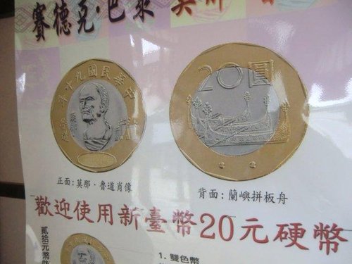 背面圖案: 蘭嶼雅美族(達悟族)拼板舟;下緣有盲人點,供視障者觸摸辨識之用。