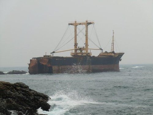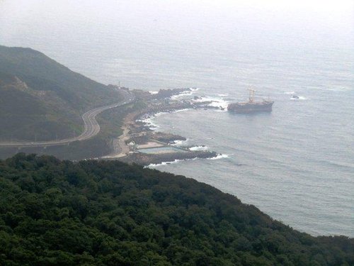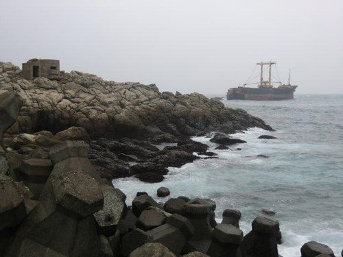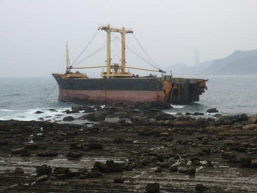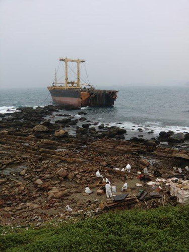 10:33 遠眺基隆外海(見10月3日因豪雨而擱淺在萬里與基隆交界處的瑞興號砂石輪)