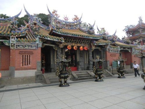 後於明治三十九年(1906年)及昭和七年(1932年)重新修建,乃成今日格局,廟中石雕牆堵石柱多為本年所重建, 樑柱結構木雕乃名匠陳應彬所設計督造,陳應彬負責大木作(結構),黃龜理負責小木作(花部雕刻),為台灣尚存少數木造寺廟建築。1972年再度重修,而成今貌。