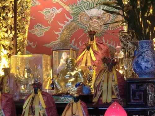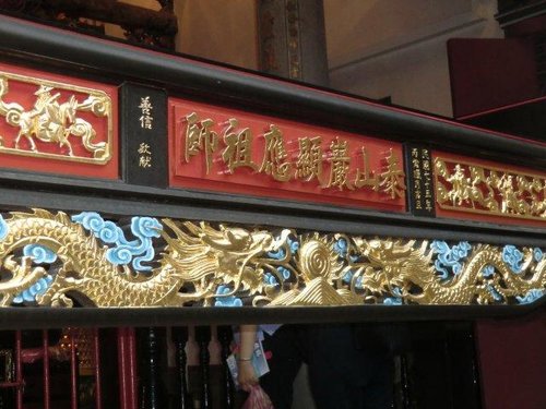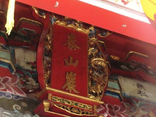 「頂泰山巖」正殿供奉安溪泰山巖分靈而來的顯應祖師為乾隆57年(1792)李符記的祖父李序原由泉州安溪之彭內奉迎來台所奉。旁祀觀世音佛祖及媽祖。左翼殿奉五文昌帝君神位,左 護龍廳奉註生娘娘;右翼殿祀地藏王菩薩,右護龍廳祀城隍爺、財神爺及福德正 神等,成為佛、道合一的殿宇。