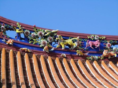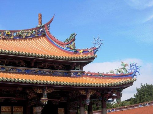 大成殿之斜脊以水龍及卷草裝飾,據說水龍可以壓火神祝融,因而可避免火災