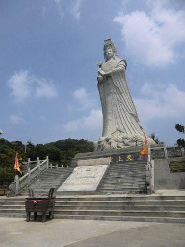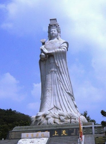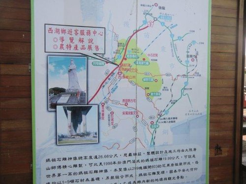 西湖媽祖石雕像總高度26.66米,慈顏端莊,整體設計及施工均由大陸唐山師父雕製;可媲美1998年於澳門落成時高度19.99米號稱世界第一高的媽祖石雕神像。 本聖像由299塊603花崗岩組裝而成 每塊均以1~5頓石材為基礎,吊裝組合而成,是目前東南亞最高的石雕神像。