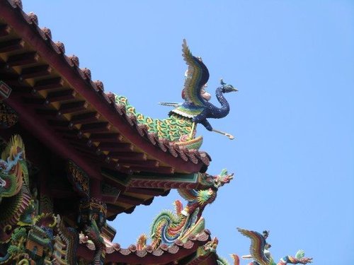五龍宮主祀媽祖,又稱「五龍媽祖」或「五龍媽」。清光緒五年初建,因座落鴨母坑山系之龍脈昂首處,呈現「三川匯聚,五嶽朝堂」之格局,因得廟名。宮旁豎立著媽祖石雕高度為26.66公尺,其面容慈顏端莊,為當地信仰地標。