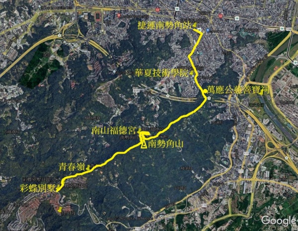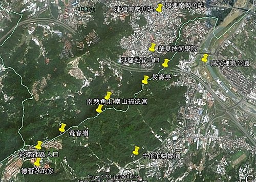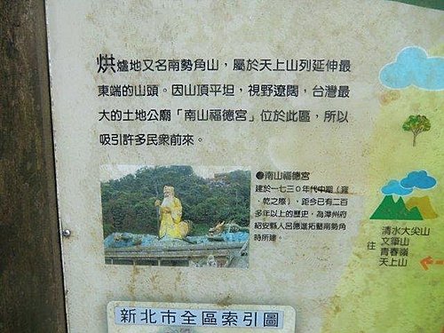 南山福德宮是由漳州移民所建,當時南勢角一地尚是荒野,俯視臺北盆地的福德宮有關照這塊土地的用意,由於廟的後方及左右兩側各突出一塊山頭,狀似烘爐,所以又叫烘爐地。