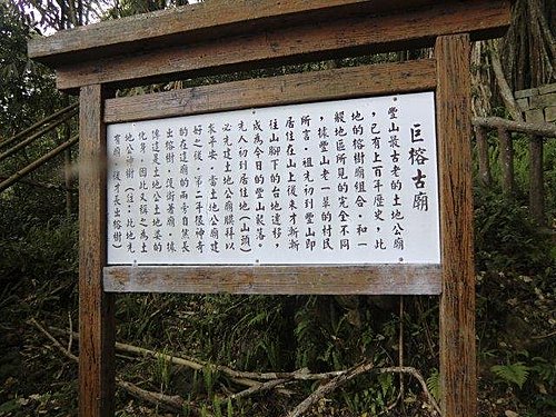 關於巨榕古廟的由來,先人每到一個新開墾的地方,會先舉辦一場敬天地的儀式,作為庇祐日後平安順利,而土地公是掌管地方上萬物,因此無論是插秧或收成,都要向土地公祈求,以求豐收,因此搭建該座古廟。
