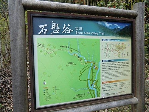石盤谷步道,全長1.2公里,位於嘉義縣阿里山鄉豐山村的最北端,以木棧道及石板步道鋪設,階梯式的溪谷地形,青翠山巒環抱,峭壁、奇岩巨石林立,沿途林木參天,翠綠竹林夾道,石盤谷吊橋上可欣賞溪谷景色壯麗風光,觀景平台可遠眺「豐山十景」之一的石盤谷瀑布,終點有造型奇特的九芎藝術林,以及壯觀的大石壁等風光。