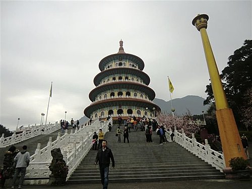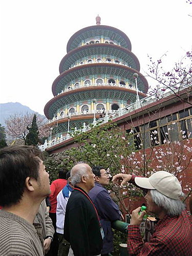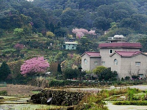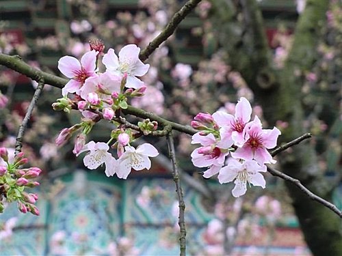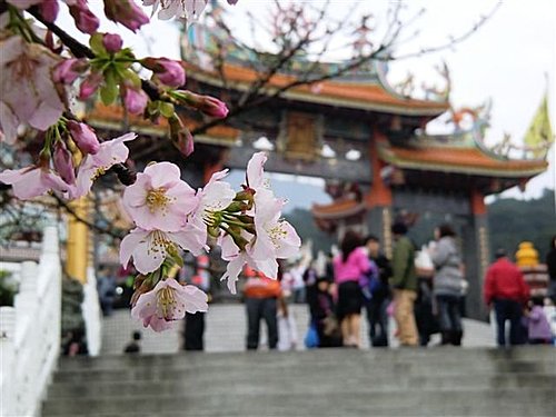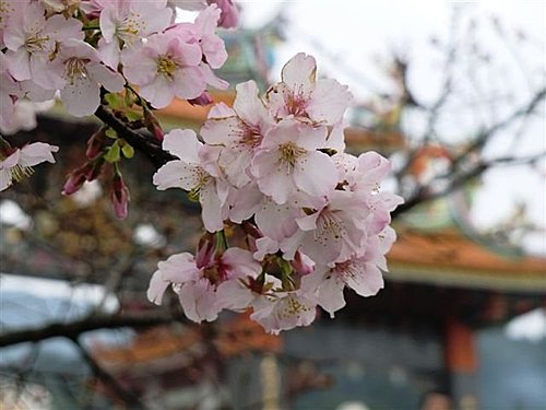 而台灣淡水無極天元宮的櫻花最特別之處,就是廟方以台灣原生山櫻花(緋寒櫻)為根本、再將日本染井吉野櫻架接其上,因此開出來的花就是淡淡粉粉的吉野櫻,幾乎是台灣最容易抵達的低海拔吉野櫻賞櫻區,而且數量高達上百棵,密度很高,粉粉櫻花配上天元宮的東方寺廟建築,可以展現類似日本、卻又帶著中國風的獨特風情。
