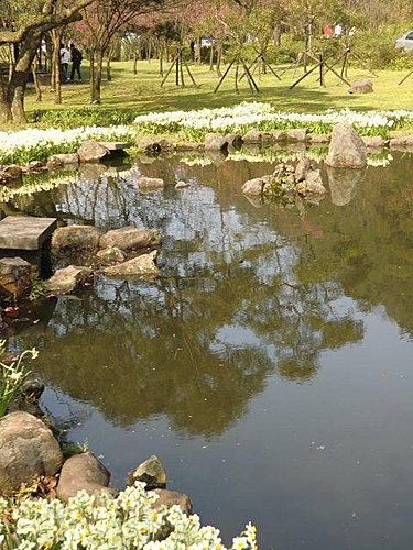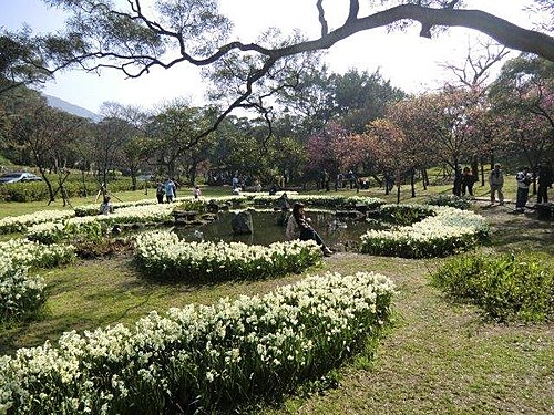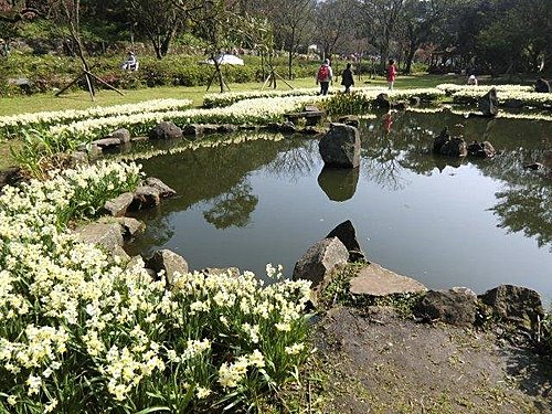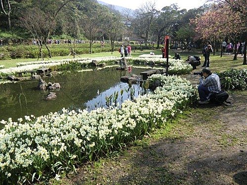 二○○九年,陽明公園湖山綠地水邊遍植水仙,那一個春天,每一陣風吹來,處處飄散水仙濃郁的花香。