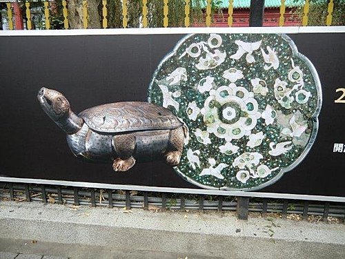 有「關中塔廟始祖」之稱的法門寺,供奉佛指舍利聞名於世,始建於北魏,在隋代稱為「成實道場」,唐高祖改名為「法門寺」。此展即以法門寺為引,回溯沉睡地底千餘年的佛指舍利重現的吉光片羽。進入特展現場,首先迎賓的是來自法門寺遺址的地磚、石龍頭等建築殘片,以回溯法門寺演變歷程;接著映入眼簾的是湮沒千餘年的地宮珍寶,其中,「鎏金臥龜蓮花紋五足朵帶銀熏爐」由爐臺、爐身、爐蓋合組而成,爐蓋上飾以五朵蓮花,每朵蓮花上有一龜回首,凸顯唐代尚龜文化。除銀熏爐,另有玳瑁開元通寶、鎏金銀龜盒、李壽龜形墓誌等皆有龜形,彰顯唐代崇尚龜之「長壽」發展而來的各色民俗工藝。