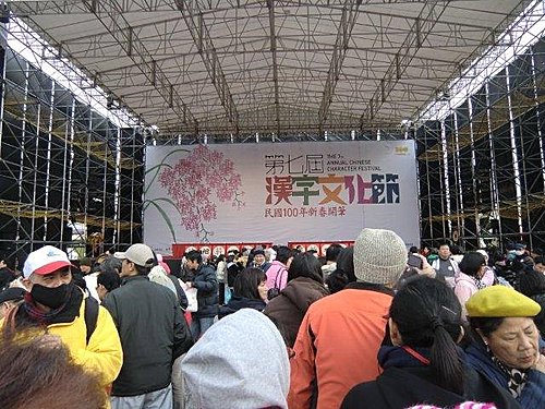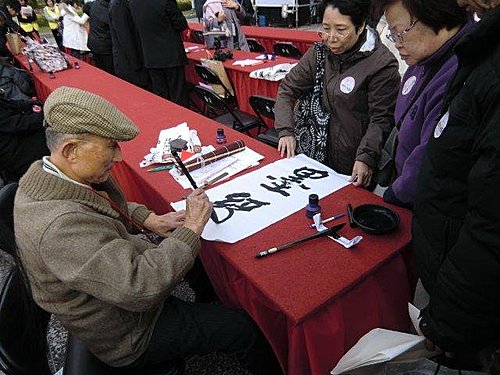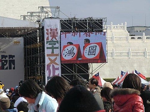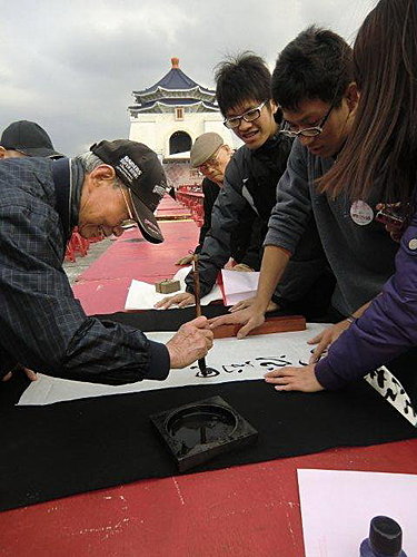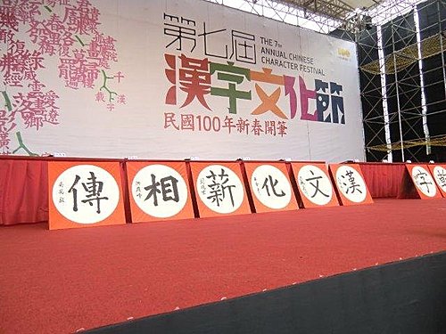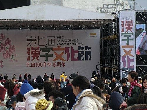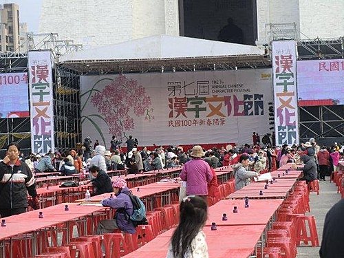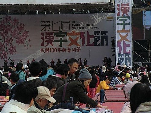 由臺北市政府主辦的第七屆漢字文化節,在民國百年第一天下午2時,於中正紀念堂民主大道舉辦「舞文弄墨─新春開筆活動」,馬英九總統、行政院長吳敦義、立法院長王金平、國家文化總會會長劉兆玄、文建會副主委洪慶峰、僑委會委員長吳英毅、臺北市長郝龍斌、議長吳碧珠、文化局長謝小韞、中正紀念堂處長曾坤地、書法家張炳煌、企業家林蔚山等12位開筆官,與臺下6000多位民眾一起揮毫迎春,為國家也為親友祈福。