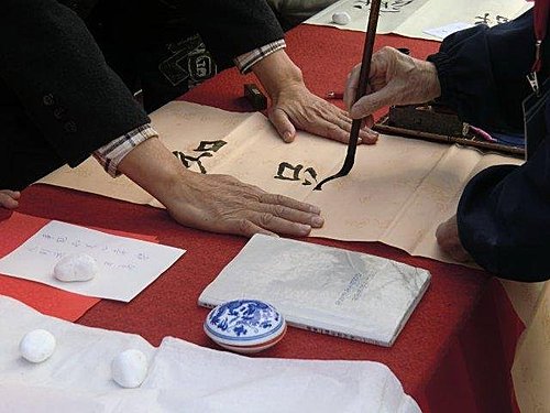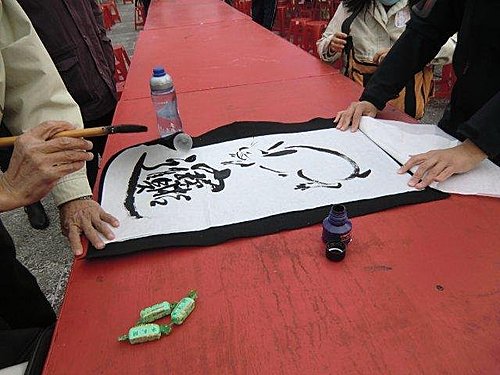 傳統習俗中,開年第一天,將心願寫在紙上獻給神明,是新年的傳統祈福儀式。12位開筆官,依古禮完成「研墨」、「起筆」、「醺墨」、「落筆」步驟,各寫一個開筆字及祈願字。以「漢文化薪相傳,字乾坤展鴻圖」的12字開筆文,為民國100年「新春開筆」活動揭開序幕。