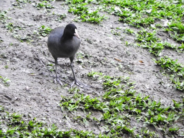 白冠雞在中國大陸稱為「骨頂雞」,體長40公分,全身幾乎全為灰黑色,具明顯的白色嘴和額甲,眼紅色,腳暗綠色,兩性相似。在中國北方湖泊及溪流常見的繁殖鳥,冬季則遷移到北緯32度以南地區,在台灣屬不常見的冬候鳥。