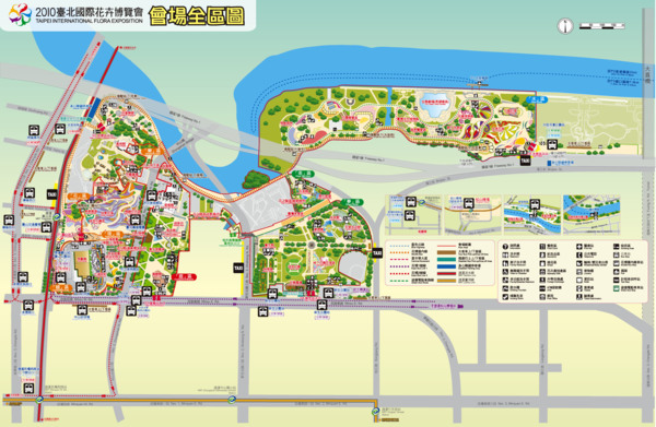 2010年臺北國際花卉博覽會園區總面積為91.8公頃,相當於大安森林公園總面積的3.5倍,大同區面積的五分之一。分為圓山公園(20.8公頃)、美術公園(7.9公頃)、新生公園(15.1公頃)和大佳河濱公園(48公頃)四區。
