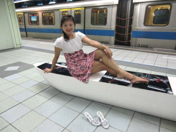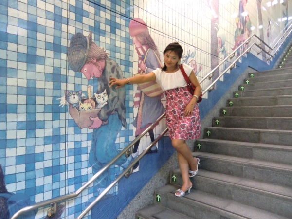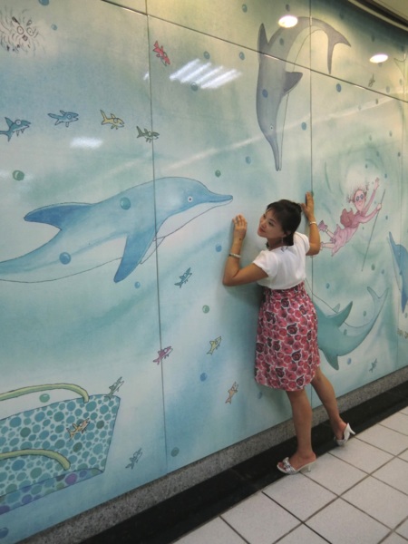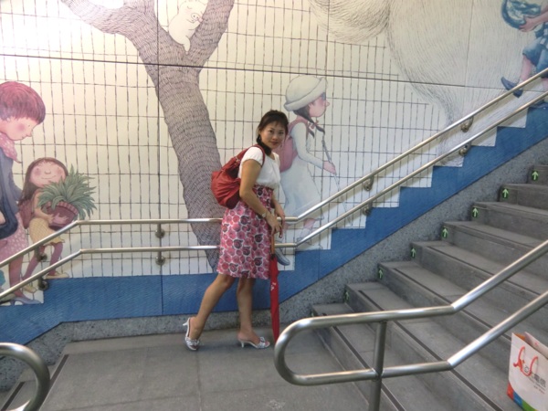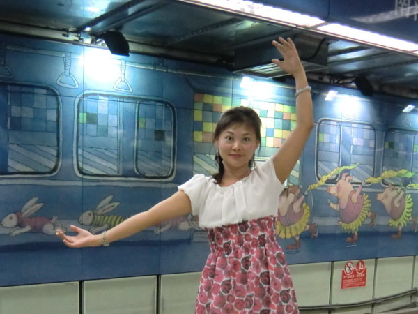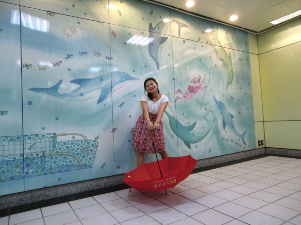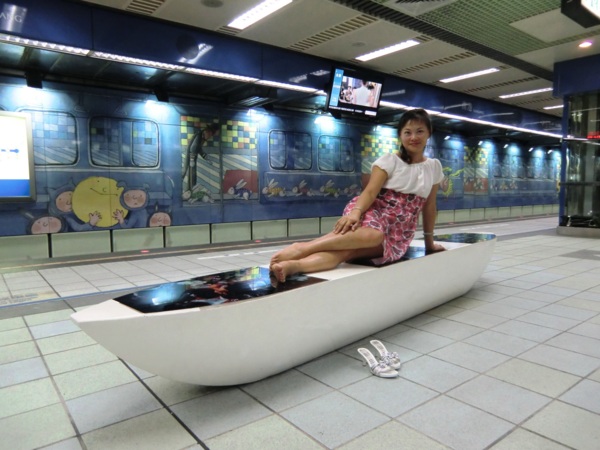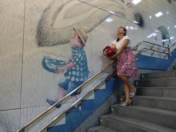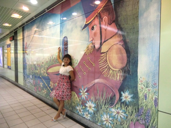 其中最大幅長度141公尺、高7公尺,位於候車月台的牆壁上,在幾米細膩的筆觸及觀察下,列車未到,車上風光已經一覽無遺,有看報的阿伯、通勤的上班族,以及沒有座位、百無聊賴的小孩,幻想著巫婆飛過車窗,小豬、兔子在原野上奔跑,與火車競賽的畫面,饒富趣味,也為無聊的候車時光增添藝術閒情。