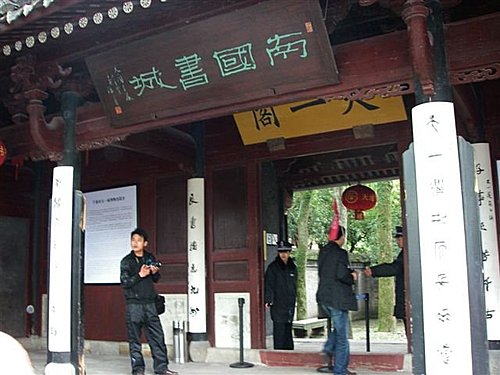天一閣是中國現存最古老的私家藏書樓,位於中國浙江省寧波市月湖西側的天一街。天一閣於明代嘉靖四十年(1561年),由當時的兵部右侍郎范欽主持建造。它不但收藏了大量珍貴的圖書典籍,並且對後世其他藏書樓的興修也產生過重大影響。天一閣一度藏書7萬餘卷,但到了近代,由於吏治腐敗、盜竊和自然損毀,書籍僅存1.3萬餘卷。中華人民共和國成立後,經過查訪和募捐,書籍達到30萬卷。1982年,天一閣被中華人民共和國國務院公布為第二批全國重點文物保護單位之一。目前,天一閣所在地成立寧波市天一閣博物館。由於其歷史和知名度,天一閣也成為寧波城市形象的象徵。