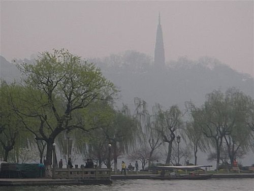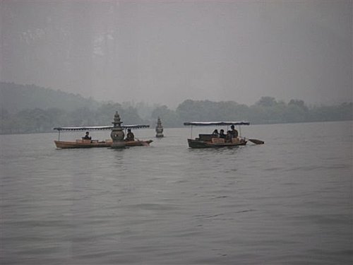 三潭印月為中國杭州西湖十景之一,是西湖中最大一個島,面積6萬平方米,又稱為小瀛洲。島南湖上有三座石塔,塔高2.5米,露出水面2米,由基座、圓形塔身、寶蓋、六邊小亭、葫蘆頂組成,塔身球形中空,周身開有五個小圓孔,孔邊飾浮雕花紋。石塔最初為宋代蘇軾所建的界塔,明代重建,演變為景觀塔。晴夜塔中點燃的燈燭與月色映照,景色尤美,即「三潭塔分一月印,一波影中一圓暈」。
