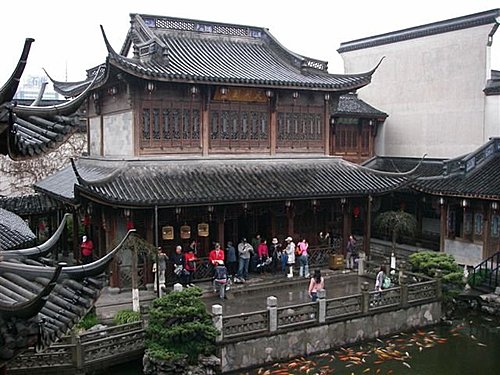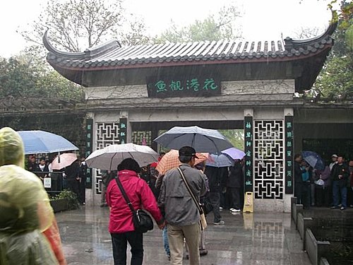南宋時期有條小溪從花家山經過此地流入西湖,這條小溪叫花溪,當時有個內侍官叫盧允升,在花溪側畔建了一座山野茅舍,稱之為「盧園」,園內景色恬靜,遊人絡繹不絕,雅士題詠,後來被稱為「花港觀魚」。