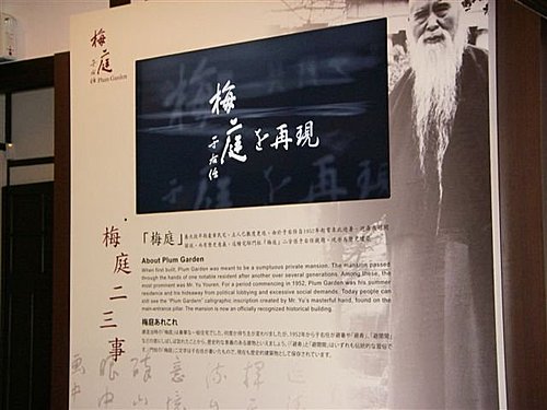 「梅庭」是于右任曾居住過的唯一在台留存建物,于右任先生自1952年起常以此作為避暑、避壽及避關說的別館,入口門柱上「梅庭」二字即為于右任親題,經過北市府整修後還以原貌,分為幾個主要展區,於99年1月起開始免費對外開放。