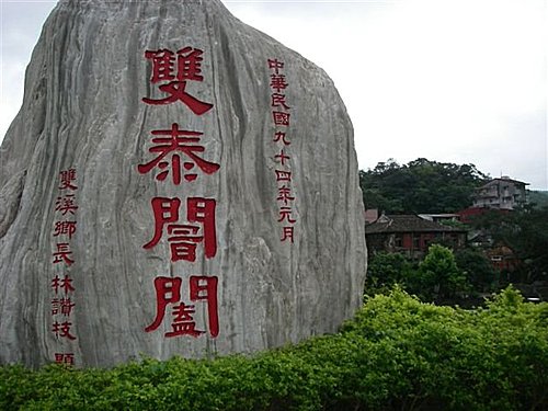 雙泰閶闔石碑位於雙溪高中平林溪邊,即雙溪鄉雙泰產業道路的入口處。「閶闔」是中國古時天門或皇宮正門的意思,雙溪鄉公所在此立「雙泰閶闔」碑,可能是意謂雙泰產業道路從此天門蜿蜒扶搖直上,直到雙溪鄉海拔最高的泰平村。
