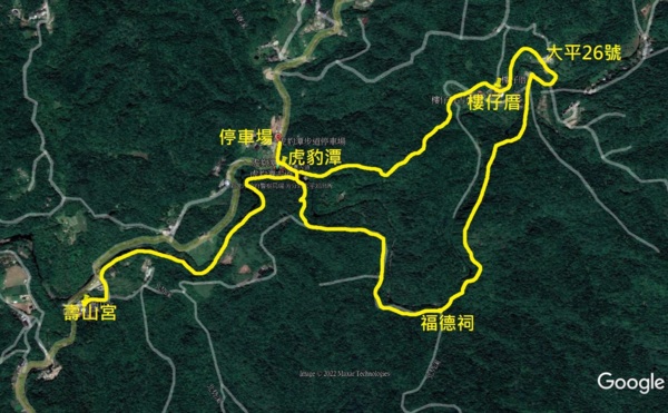 虎豹潭步道是虎豹潭地區最大眾化的一條水岸步道,從虎豹潭走往壽山宮媽祖廟,長約1.1公里。亦可順訪壽山宮附近的鯉魚山福德祠。回程可原路折返,或步行雙泰產業道路,欣賞鄉村風光,並造訪已廢校的泰平國小。步道來回(含休息)約兩個小時。
