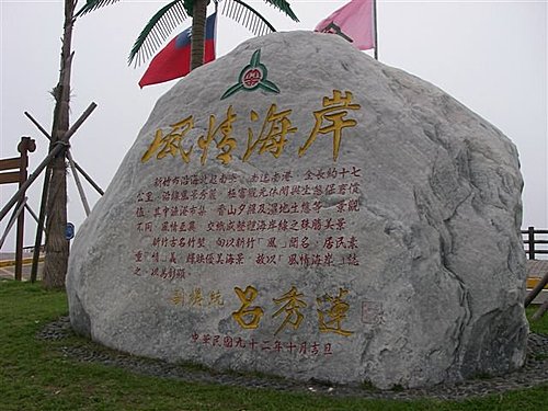 為強化該景點意象,特將呂副前總統命名之「風情海岸」景觀石置於此,另由廢棄軍用碉堡改建之廁所,亦為該處乃至於本島最特殊之建築,為資源永續利用豎立新的典範。