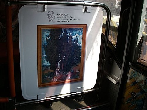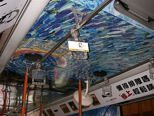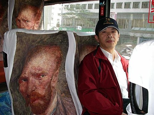 國立歷史博物館「燃燒的靈魂‧梵谷」特展正夯,由大都會客運打造的梵谷造型旗艦專車,2010.02.10正式與民眾見面,全廂採梵谷名畫彩繪,車內車外一體,進入車廂有如置身梵谷畫作現場,相當特別。