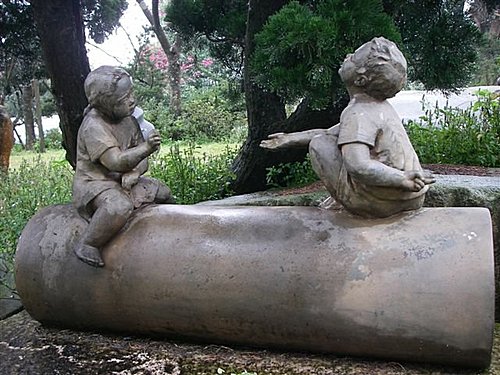 他的“天之嬌子”系列,嬰兒著實是個人見人愛,無論立臥俯仰,臉上總是流露出安祥、滿足和天真爛漫的笑容,即便是睡在母親懷裡,嘴角也還是往上翹的。令人置身於公園中,不知不覺仿佛回到無憂無慮的孩提時代,疲累頓失,精神為之一振。