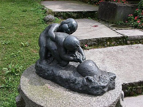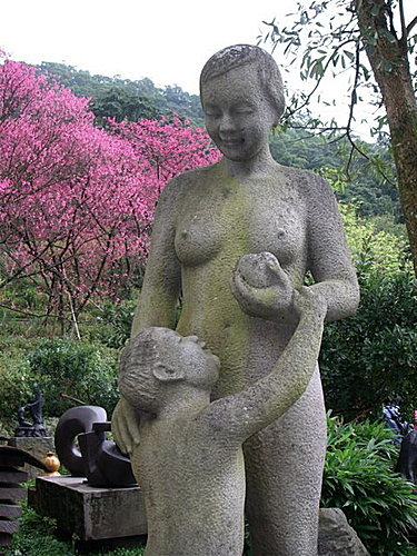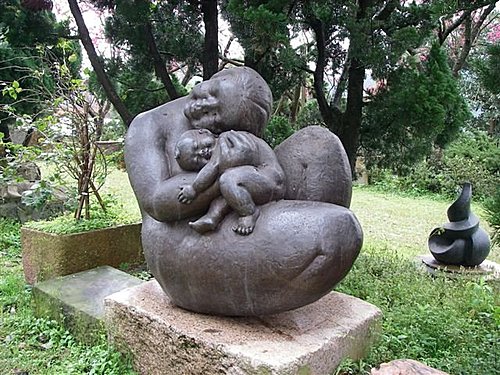 在這個昔日他父輩的果園,今日的王秀杞石雕公園中,映入訪客眼簾的,既有或仰著或趴著安睡的嬰兒,天真淘氣盡情嬉戲的兒童,也有充滿溫情正在哺乳的母親,背著孫子享受天倫之樂的阿嬤。孩子、母親、祖母構成了公園“親情系列”的主角。