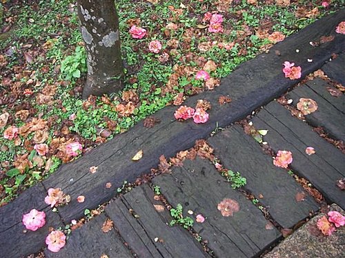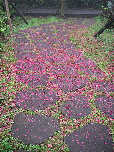 園區內的山櫻花也已落紅無數