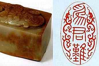 「為君難」壽山石螭鈕長方印,印文長8.6公分、寬5.2公分,雍正登基元年命人刻了許多方「為君難」印章,時常蓋印在御書與古書畫上,激勵自己不要忘記皇帝的職責。