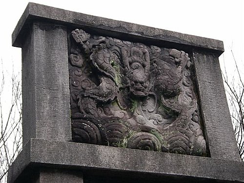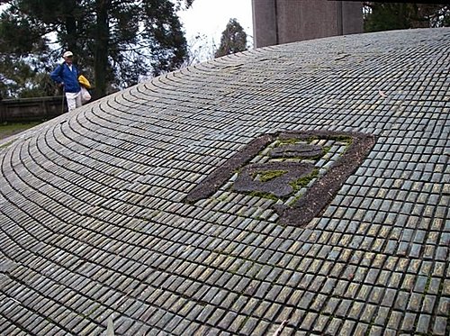 墓前斜坡上,用水泥雕成一個三米多高的“中”字。圓形的墓丘飾以灰綠色的馬賽克貼面,其間用水泥塑有“世界大同”四個大字,“世界大同”的間隙處下方,又分別嵌有四個“中”字,取意於為:處事、為人、為政,都要“發於仁,歸於中”。
