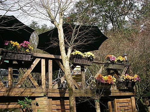 「台北奧萬大」園區,依山園地形設置賞景木屋、觀景雅座、及溪邊雅座,周圍環繞蓊蓊鬱鬱的林木、潺潺溪流,園內植栽除了楓樹外,還有松、櫻、柏、茶花類,置身美景品嚐美食,聆聽蟲鳴鳥叫,真是三重享受,這裡提供咖啡、蔬食簡餐。