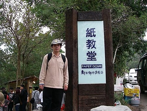 紙教堂(Paper Dome)原是1995年日本阪神大地震之後,東京的建築師坂茂為燒燬的神戶鷹取教會所設計,作為臨時禮拜之所。當時開始著手研究紙建築的他,以成本較低的內部則用五十八根紙管(長度5m、直徑33cm、厚度15mm)建構出一個可容納八十個座位的橢圓形空間。坂茂利用紙管構成的橢圓形與外牆之間的空間形成一個迴廊,屋頂則覆蓋以透光的天幕,當光線由屋頂射下,形成一種莊嚴與神聖的氛圍。紙教堂便於拆卸、移動與重建,符合新世紀的環保概念與遊牧精神。