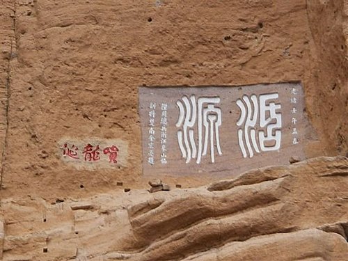 水簾洞石壁表面留有不同時期所鑿下的石刻,其中「活源」二字乃清光緒壬午年孟春(1月),陛用總兵浙江象山協副將余宏亮所題寫,作者有感朱熹「觀書有感」一詩,「半廟方塘一鑒開,雲影天光共徘徊;問渠哪得清如許,爲有源頭活水來。」如同此景,而提下此二字。諸如此類的感言刻於崖壁之上,成了現今水簾洞一大特色。