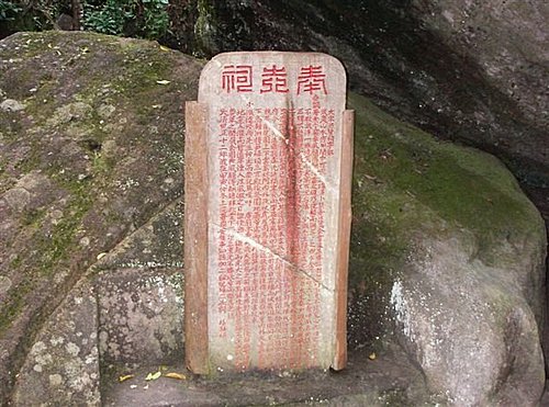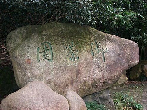 從伏虎岩石徑往上登,便可看到一道石門,門額上刻有"峥嶸深鎖"四字。進石門,眼前豁然開朗,別有洞天,這就是素有産茶"甲於武夷"之稱的茶洞,從洞中放眼眺望接筍峰,隱屏峰、玉華峰,清隱岩、天遊峰、仙掌峰,以及遠在山曲的仙遊岩,峭壁聳立的危崖,就像一幹堵堵高大的城,把它團團圍住。惟一的通道,就是西邊的一條岩罅,人在洞中有如陷入井底一樣,擡頭仰視,僅見青天一圍。