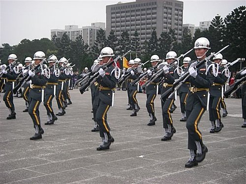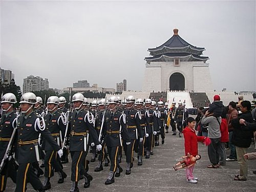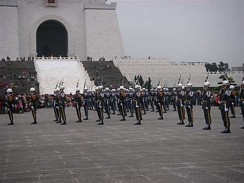 三軍儀隊在廣場上操演