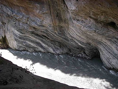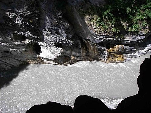 如何分辨這兩種壺穴呢?一般而言,經立霧溪水淘蝕所形成的壺穴,開口幾乎都朝向上游;而地下水溶蝕而成的壺穴,其開口大致都是朝向下游。