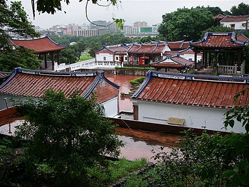 在昨日世界的宅院,大都是仿自閩南、粵東的傳統建築,無論你從那個方向進入民俗文化區,首先映入眼簾的就是匾上寫著「紫氣東來」、「咸樂太平」的牌坊。
