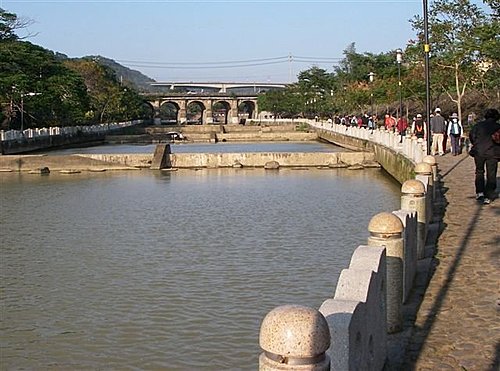 在東安橋下就是孕育關西農業源頭的牛欄河了,這條鳳山溪的支流僅有5.2K,因清代時有居民在此設柵欄牧牛,故稱之為牛欄河。這裡闢為「牛欄河親水公園 」,岸邊是整列的垂柳、清澈的溪水,不時有民眾來此戲水、垂釣,一幅寧靜優美的景緻。